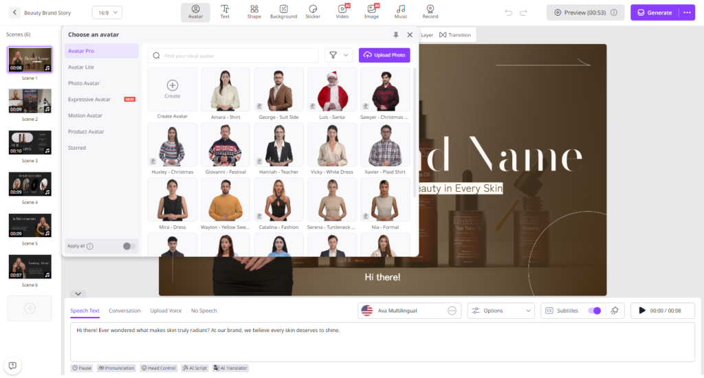 - Realistic AI Avatars: Vidnoz AI offers over 1900+ AI avatars from different roles and industries, such as teachers, students, customer support, new reporter, and more. Plus, with its Avatar Lite, you can create digital twins in 40+ languages, and Avatar Pro offers deeper customization features.